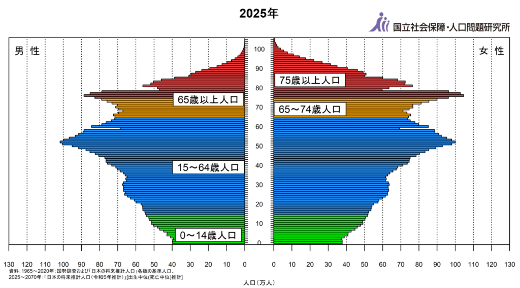 今年2025年には、団塊の世代の全員が「後期高齢者」になっています。(私もその一人)