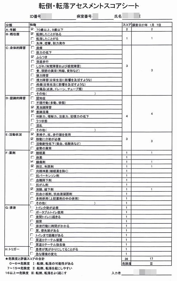 <リハビリテーション実施計画書>および<転倒・転落アセスメントスコアシート>