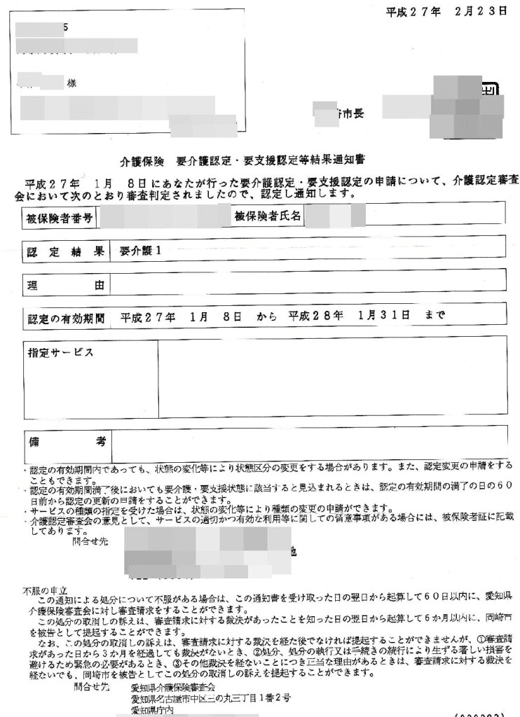 義母のケガとリハビリ後の生活機能(ADL)状況を考えると、恐らく要介護1と認定されるか、もしくは要支援2ではないかと想像されたのですが、審査結果は<要介護1>。