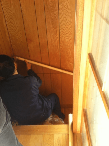 この間、妻が体調不安から、階段の昇り降りが不安で、手摺りが欲しいと言い、建具屋さんに頼んで取り付けてもらいました。