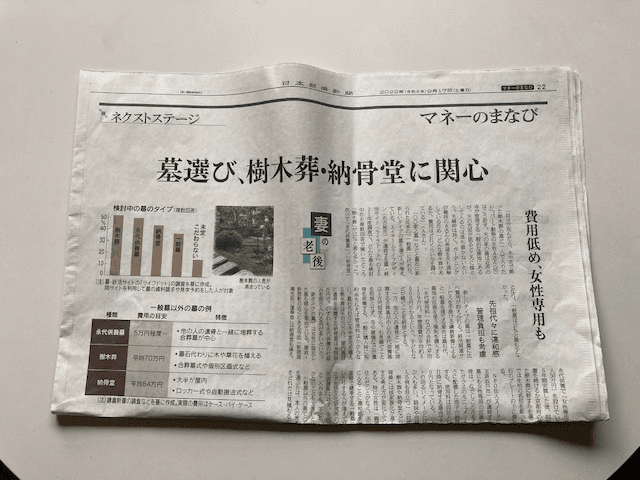 ところで、ちょうど一昨日9月17日付け日経の<ネクストステージ>欄に、お墓選びに関する特集記事が掲載。