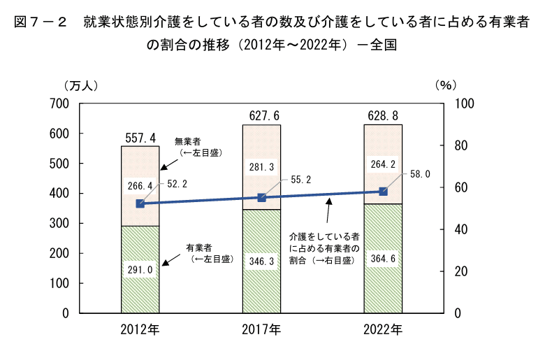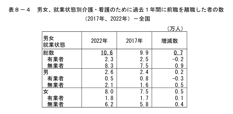 この数は、前回調査から約1万人増加しており、今後も高齢者人口の増加に伴い、介護離職者数はさらに増加することが懸念されています。