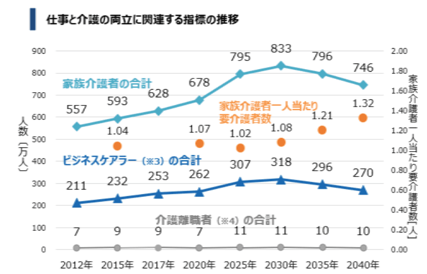 (参照:下図、「仕事と介護の両立に関連する指標の推移」)