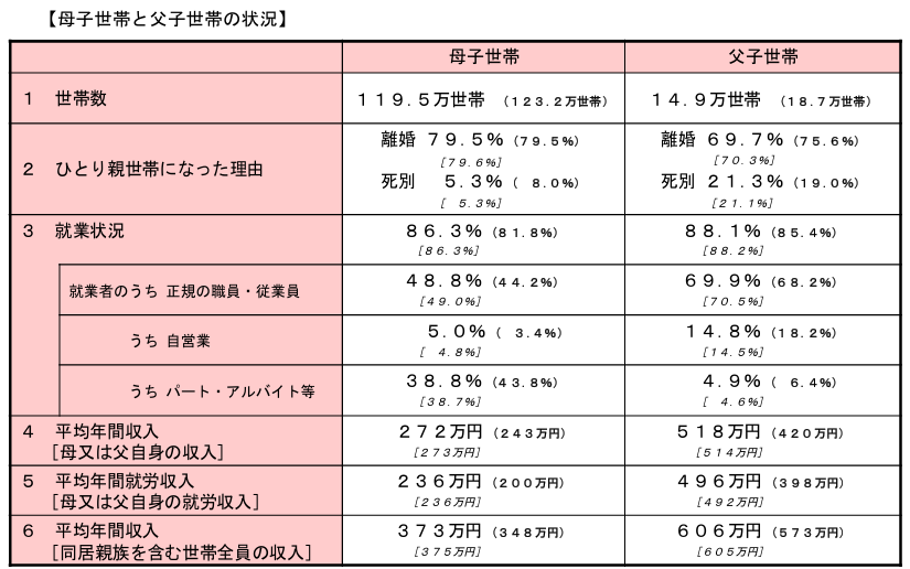 ・母子世帯数 119.5万世帯、父子世帯数 14.9万世帯